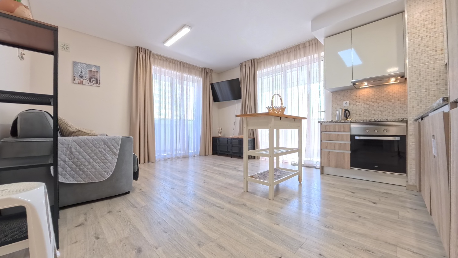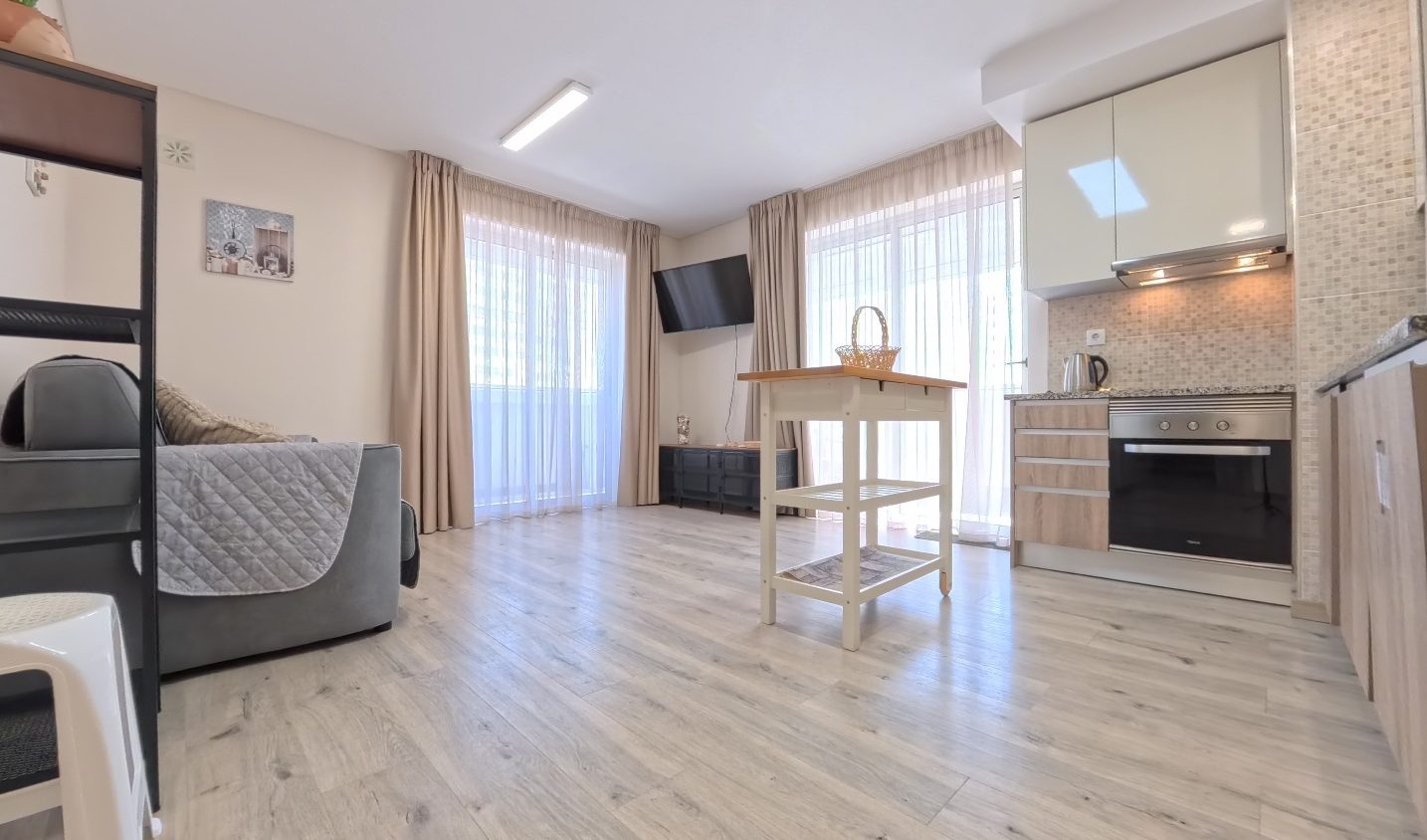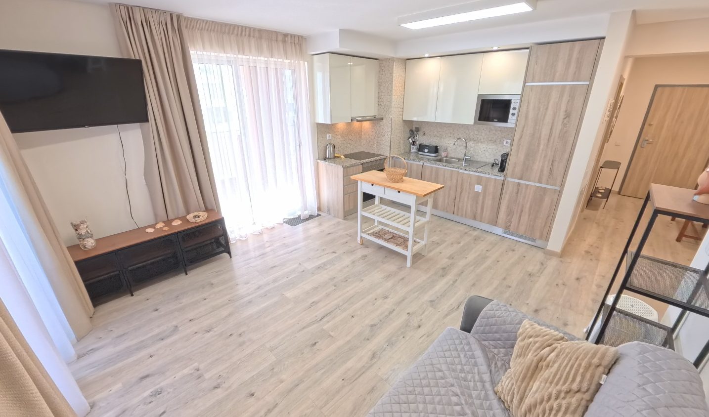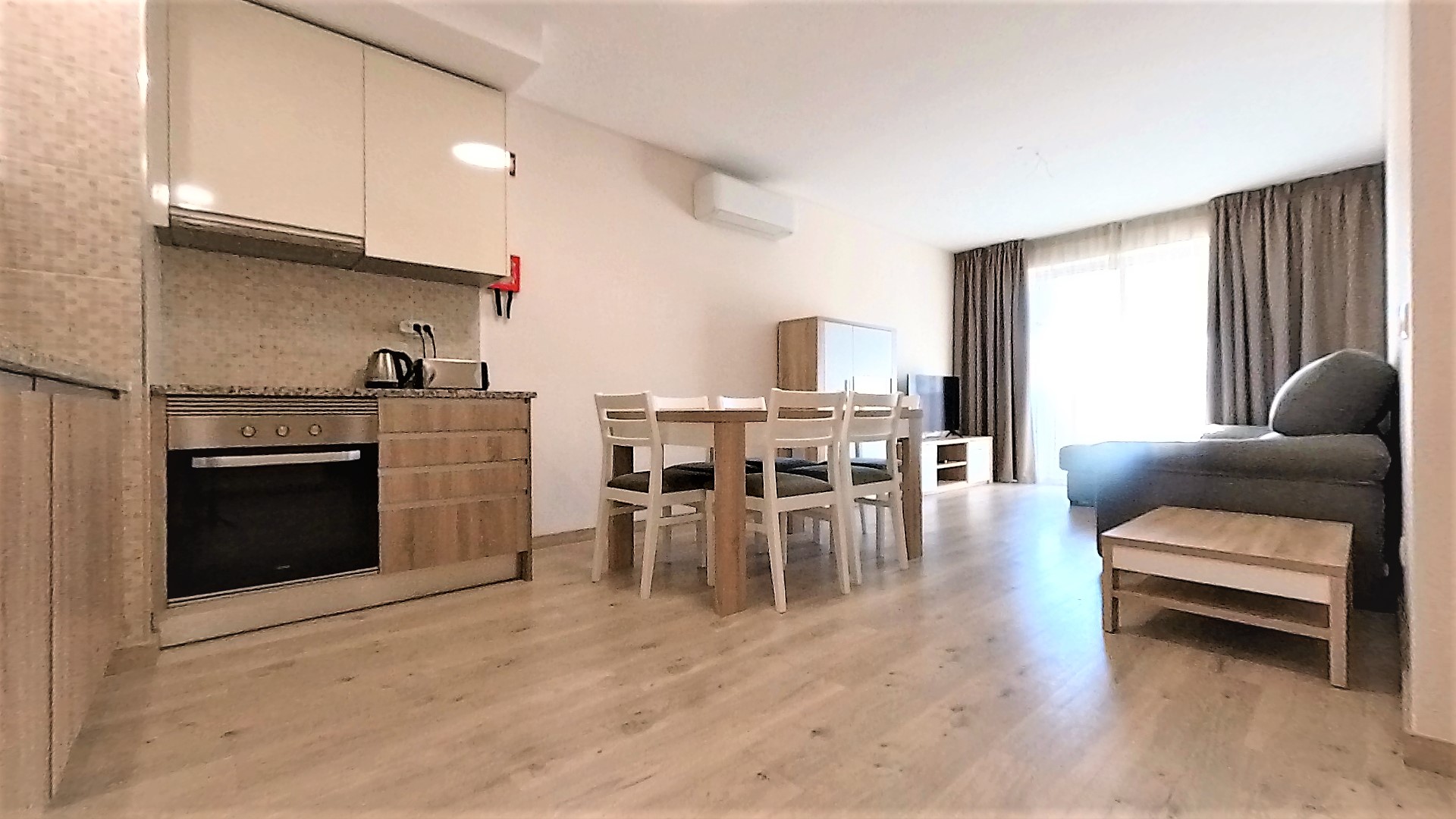 - Amenities: Air conditioning, Balcony, Cable Internet, Cable TV, Concierge, Dining area, Dishwasher, Electric Hot Water, Electric kettle, Exhauster, Flat-screen TV, Free parking, Free WiFi, Hair dryer, Iron, Ironing Board, Kitchen utensils, Microwave, Outdoor swimming pool, Range/Oven, Refrigerator, Sheets and Towels, Toaster, Vitroceramic Cooktop, Washing machine