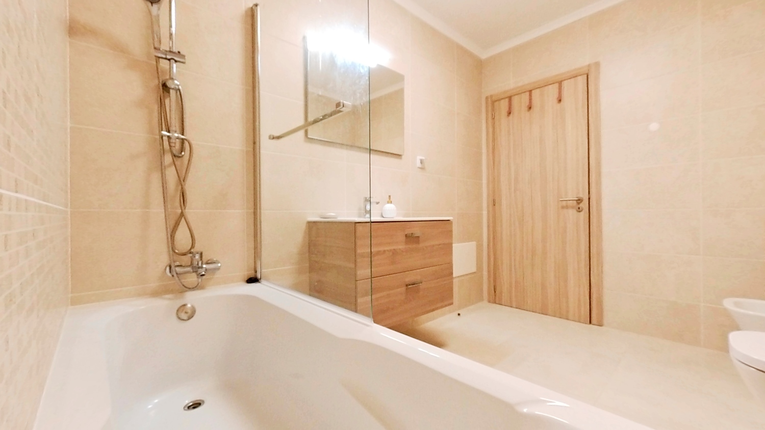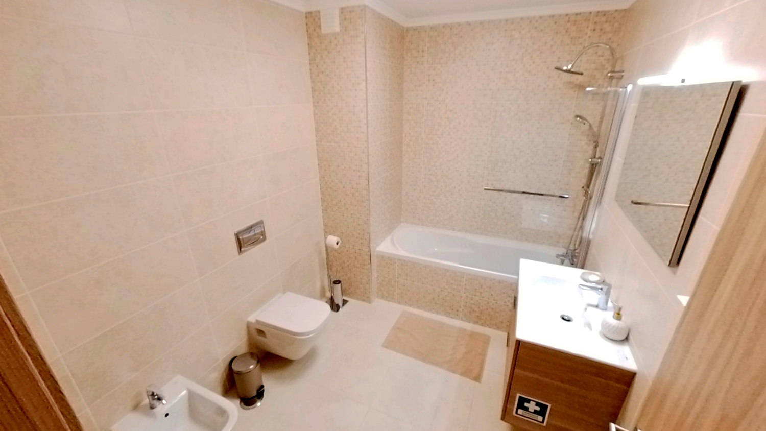 - Amenities: Air conditioning, Balcony, Cable TV, Common garden, Concierge, Dishwasher, Electric kettle, Exhauster, Flat-screen TV, Free parking, Free WiFi, Gas water heater, Hair dryer, High Security Door, Iron, Ironing Board, Kitchen utensils, Microwave, Outdoor swimming pool, Range/Oven, Sheets and Towels, Toaster, Washing machine