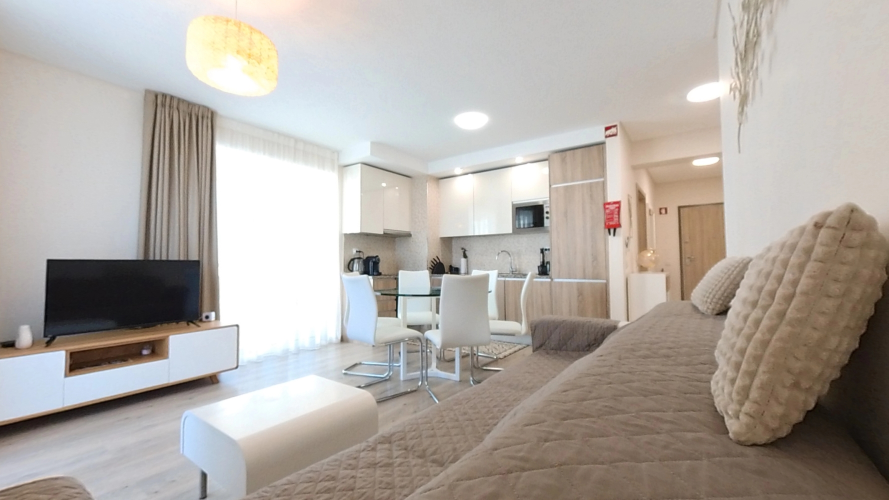 - Amenities: Accessibility Amenities, Air conditioning, Appliance Amenities, Balcony, Beachfront, Cable TV, Concierge, Dining area, Dishwasher, Electric Hot Water, Electric kettle, Exhauster, Exterior Amenities, Flat-screen TV, Free parking, Free WiFi, General Amenities, Hair dryer, High Security Door, Interior Amenities, Iron, Ironing Board, Kitchen utensils, Microwave, Outdoor swimming pool, Range/Oven, Refrigerator, Security Amenities, Sheets and Towels, Toaster, Video Intercom, Vitroceramic Cooktop, Washing machine