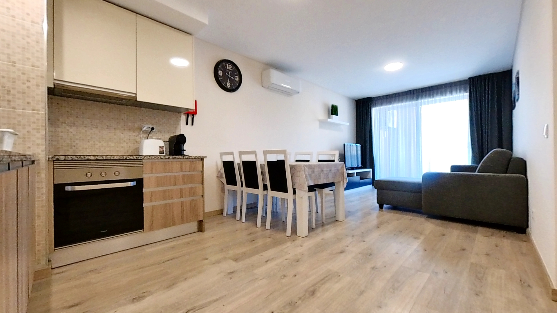 - Amenities: Air conditioning, Balcony, Common garden, Dining area, Dishwasher, Electric Hot Water, Electric kettle, Exhauster, Fireplace, Flat-screen TV, Free parking, Free WiFi, Hair dryer, High Security Door, Iron, Ironing Board, Kitchen utensils, Microwave, Outdoor swimming pool, Range/Oven, Refrigerator, Sheets and Towels, Toaster, Video Intercom, Vitroceramic Cooktop, Washing machine, Wheelchair Ramp