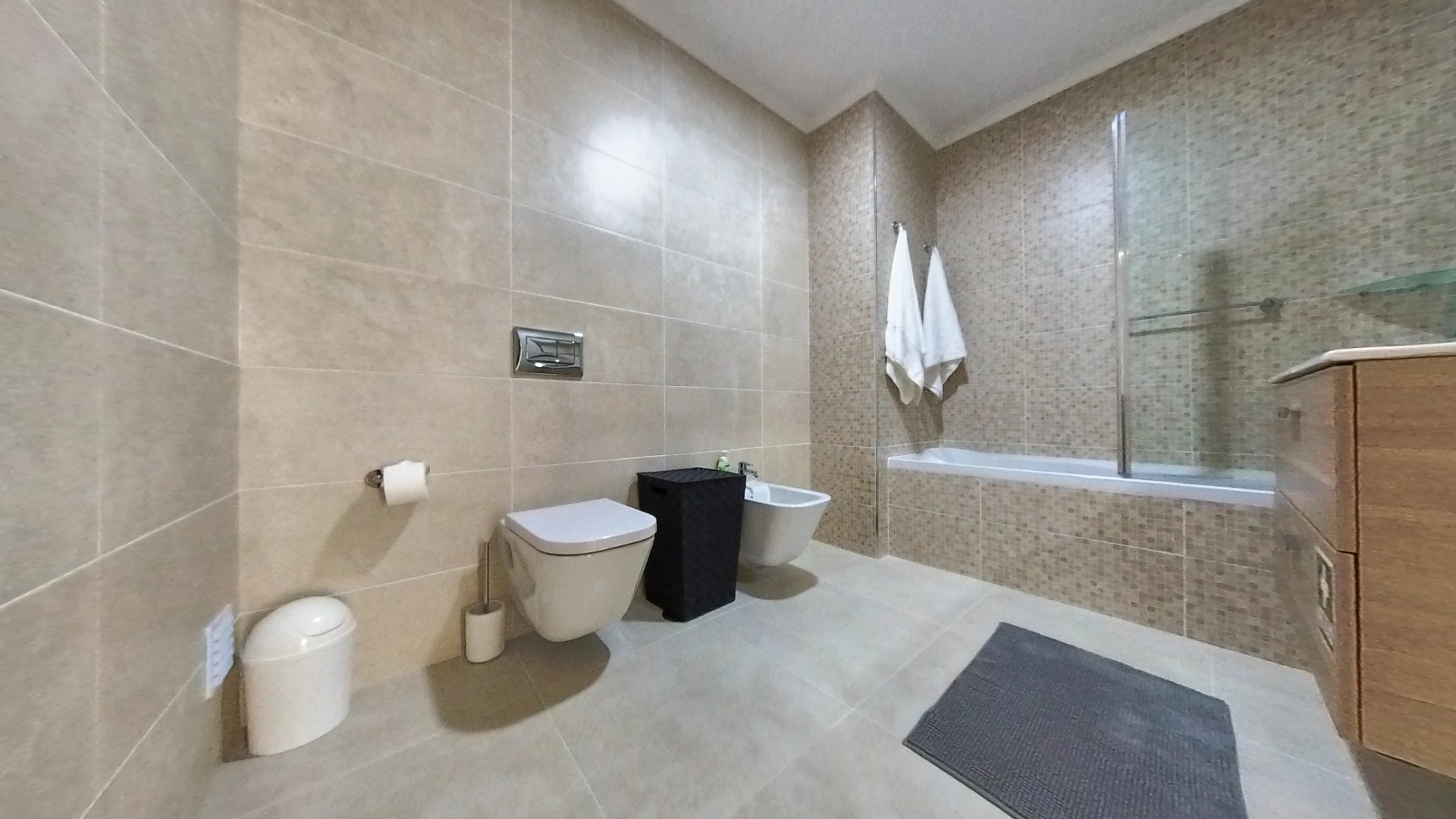 - Удобства: Балкон, Бесплатная парковка, Бесплатный WiFi, Видеодомофон, Водонагреватель, Вытяжка, Гладильная доска, Дверь высокой безопасности, Духовка, Кабельное ТВ, Кабельный интернет, Кондиционер, Кухонные принадлежности, Микроволновая печь, Плавательный бассейн, Посудомоечная машина, Простыни и полотенца, Стиральная машина, Столовая, Телевизор с плоским экраном, Тостер, Утюг, Фен, Холодильник, Электрический чайник